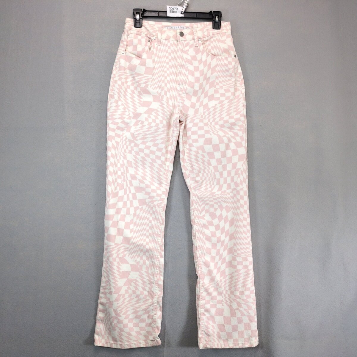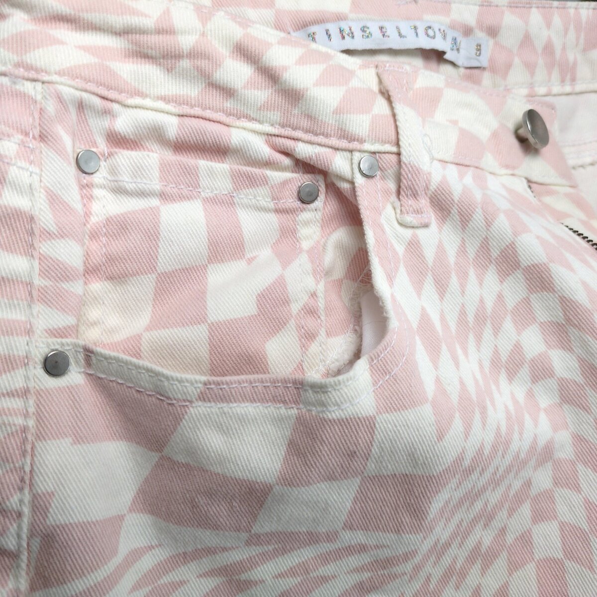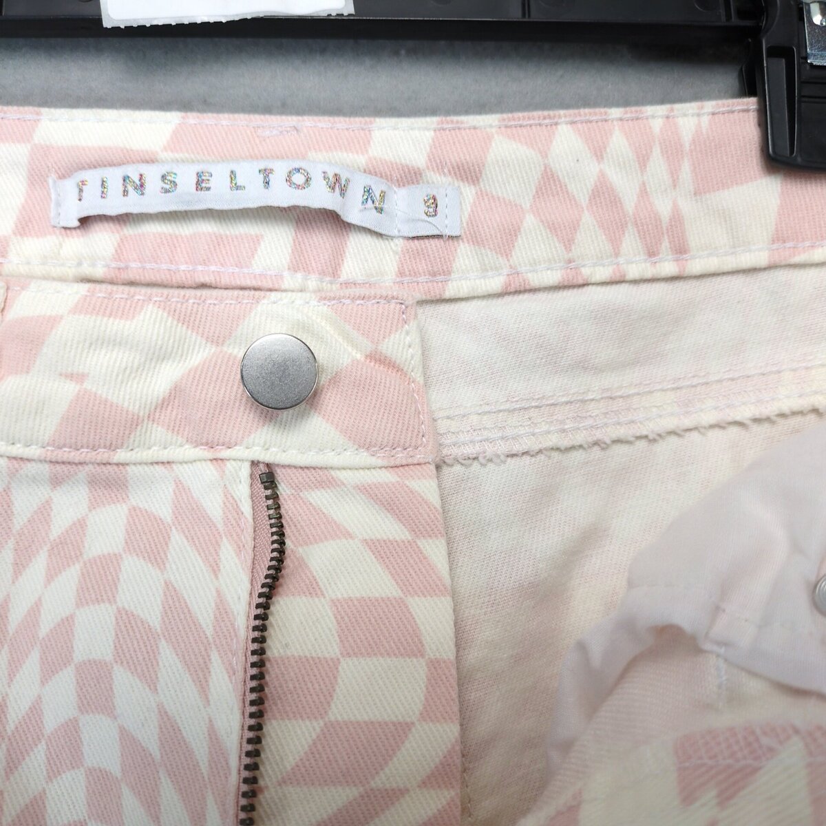 Tinseltown Pink White Checkered Psychedelic Jeans Women's Jrs 9 27x31" Retro