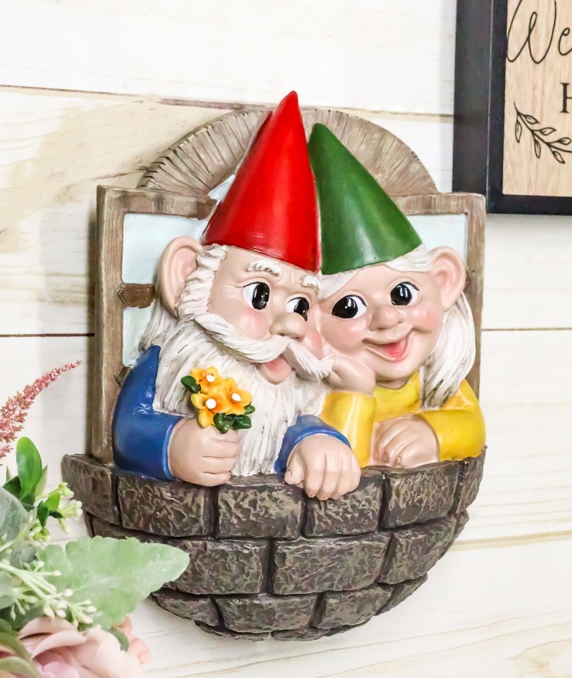 Ebros Whimsical Mr Mrs Dwarf Gnome Couple By Window Ledge Balcony Wall Decor Plaque
