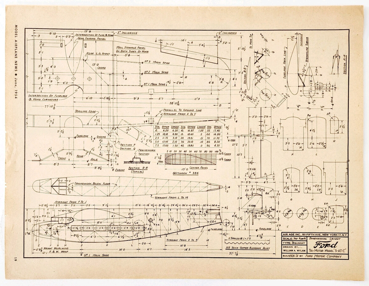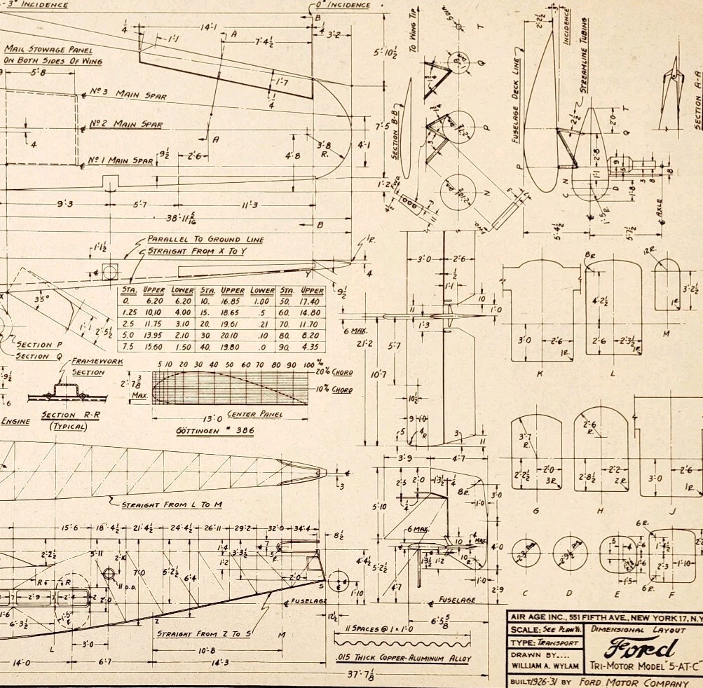 1974 Ford Motor Company Tri-Motor Model Airplane Blueprint 5-AT-C DWQQ12