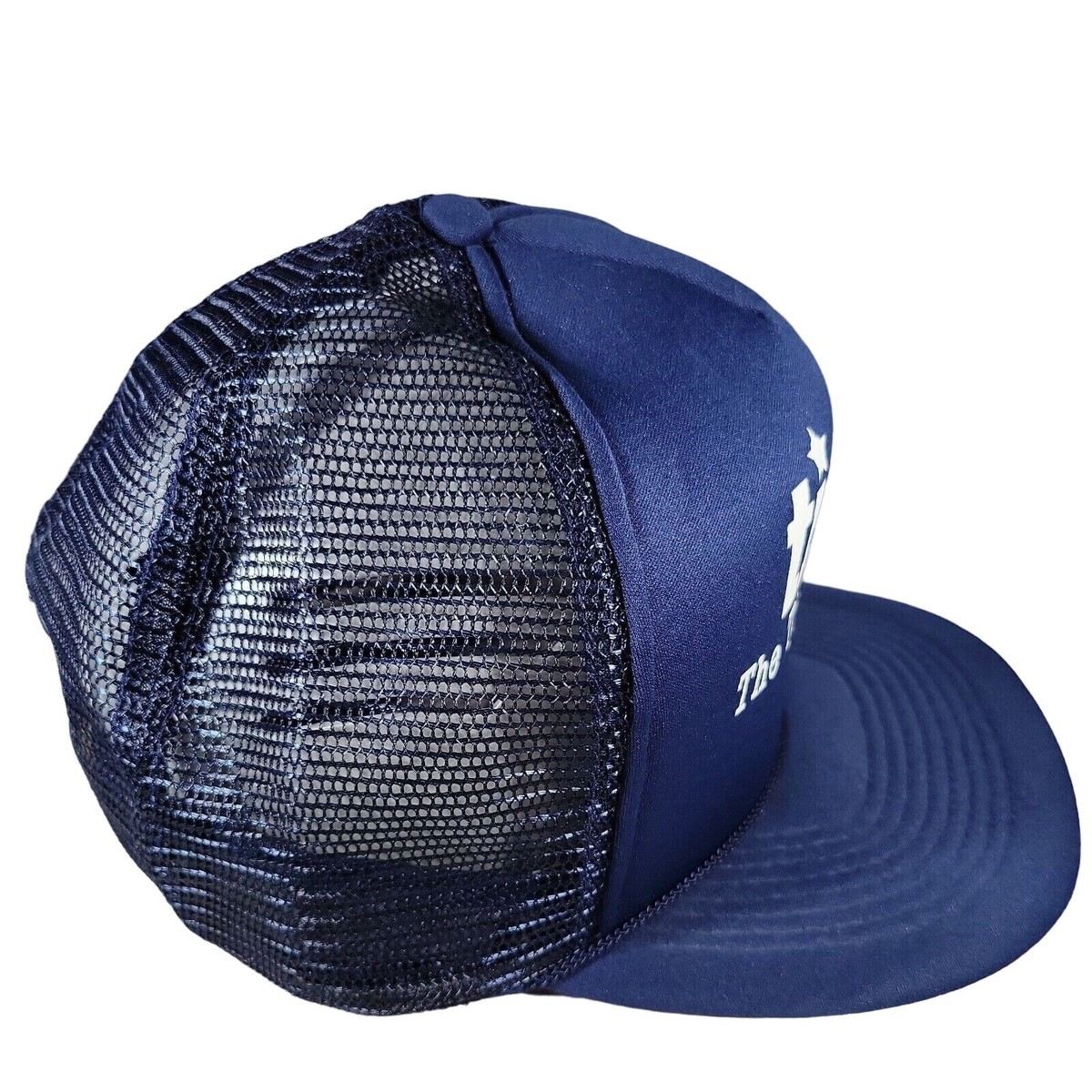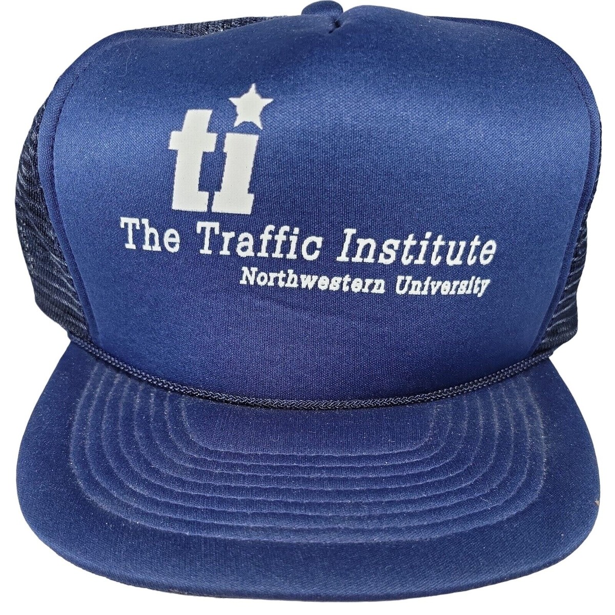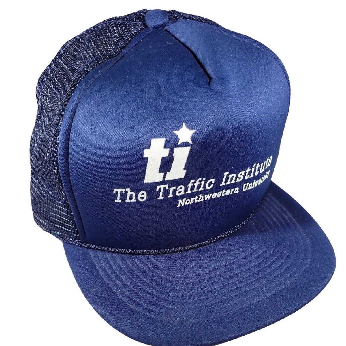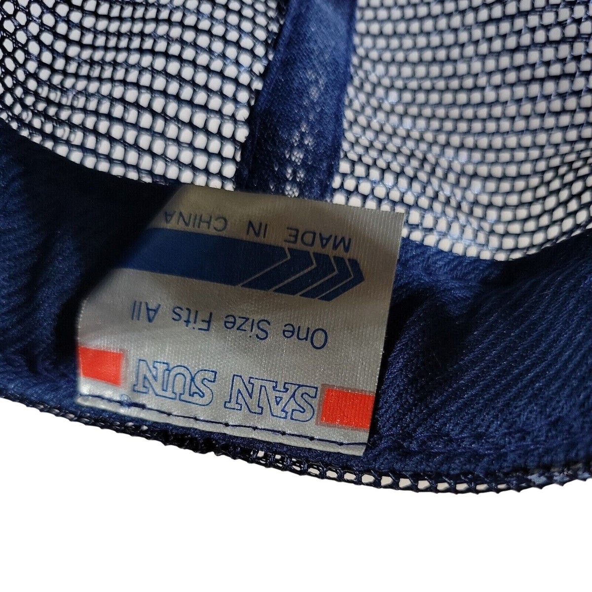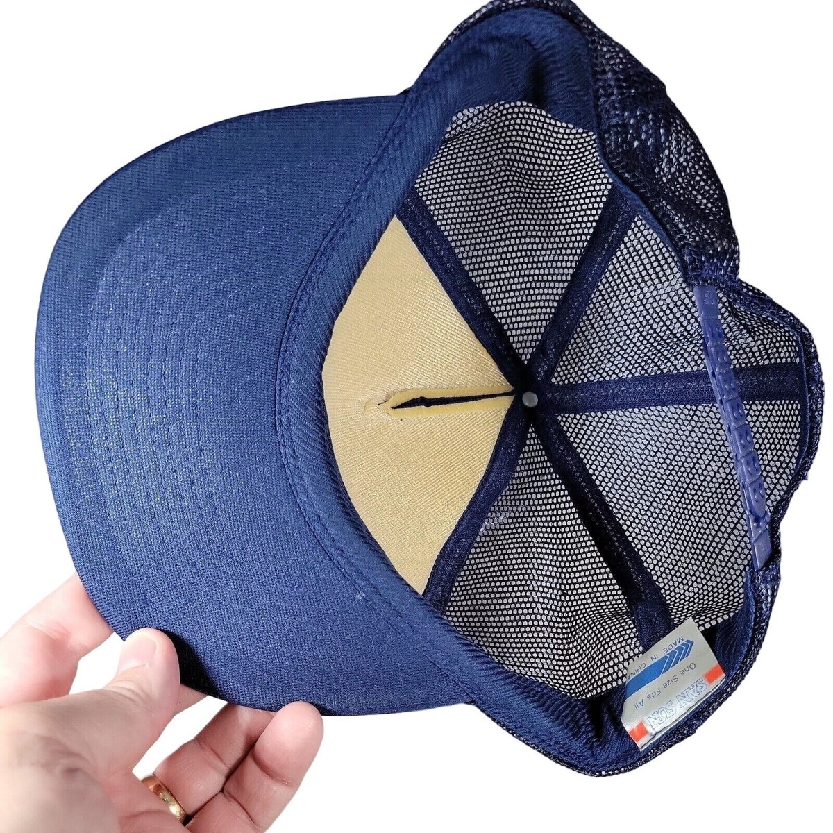 80s VTG San Sun Hat Double Snapback Trucker Cap USA Blue Mesh Foam Northwestern