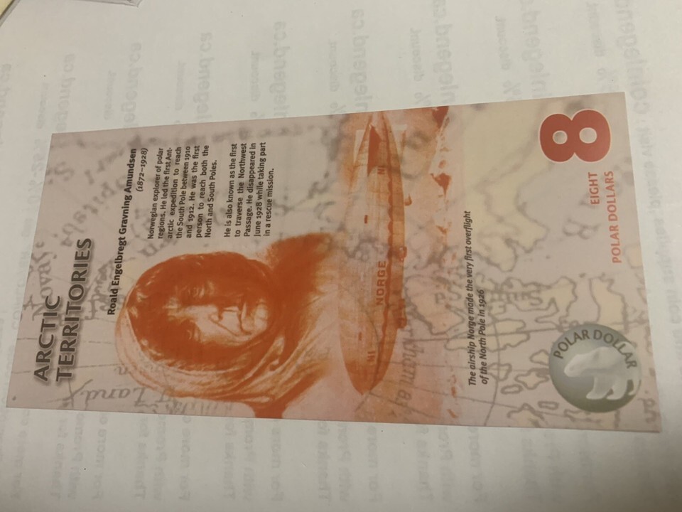 2011 ARCTIC TERRITORIES TEST NOTE - 8 Dollars Polymer Polar Bear Series 3A UNC