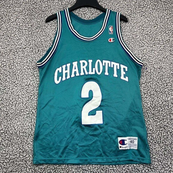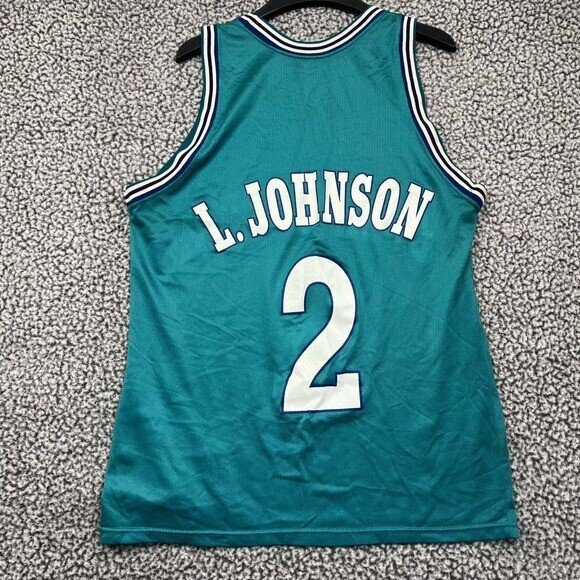 Vintage Larry Johnson #2 Charlotte Hornets Jersey Shirt Men 40 Teal Champion NBA