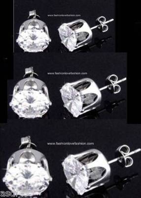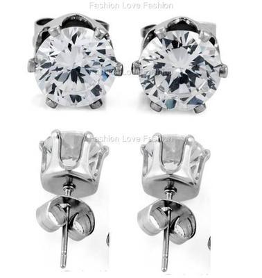 Clear Round CZ Cubic Zirconia Pierced Stud Earrings For Mens/Womens Sparkling