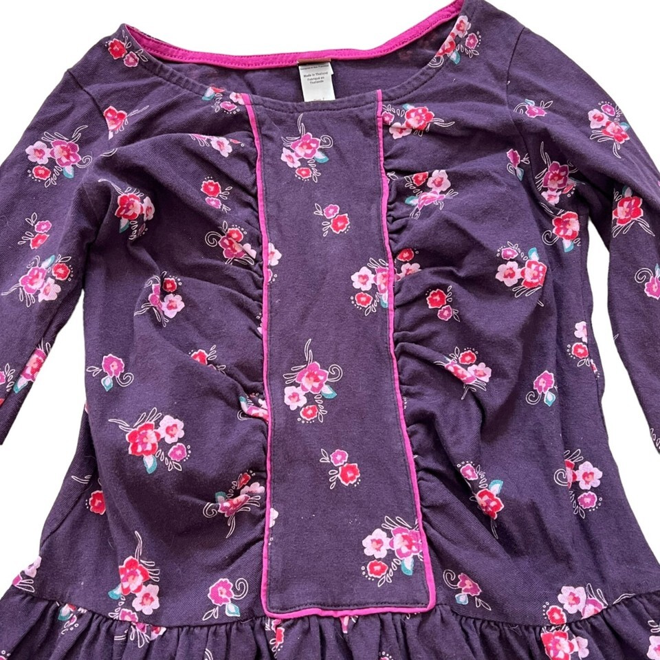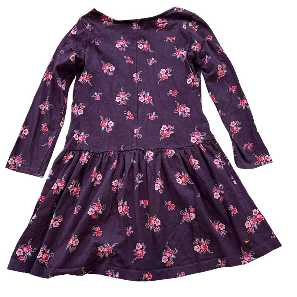 Tea Collection Size 7 Purple Knit Long Sleeve Dress Floral Print