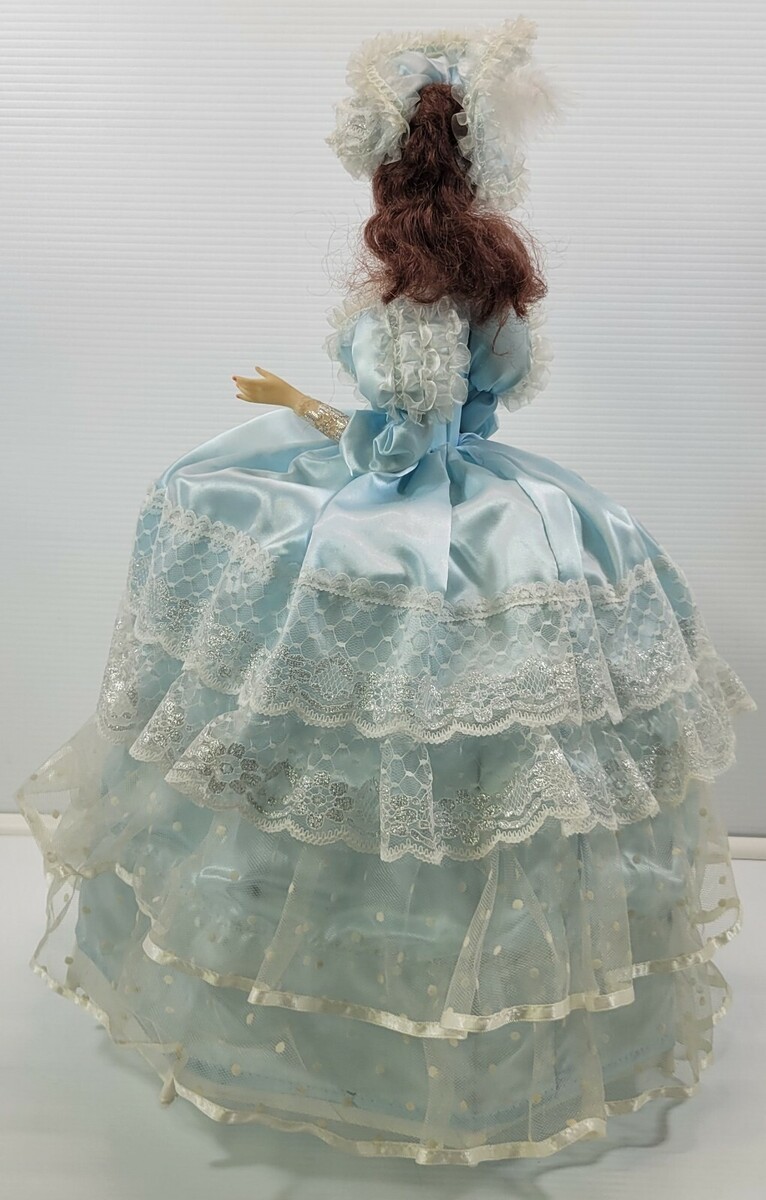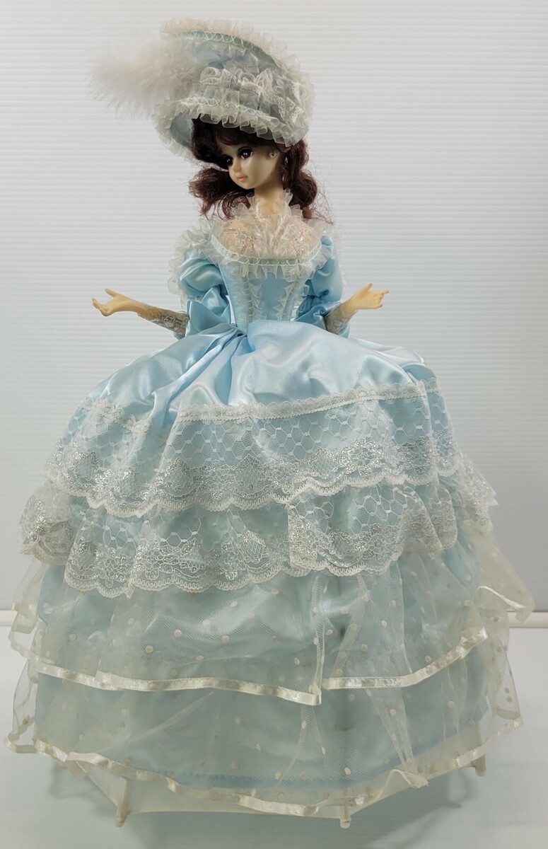 *AP) Vintage Victorian Cage Crinoline Blue Dress Musical Spinning Doll 22" Tall
