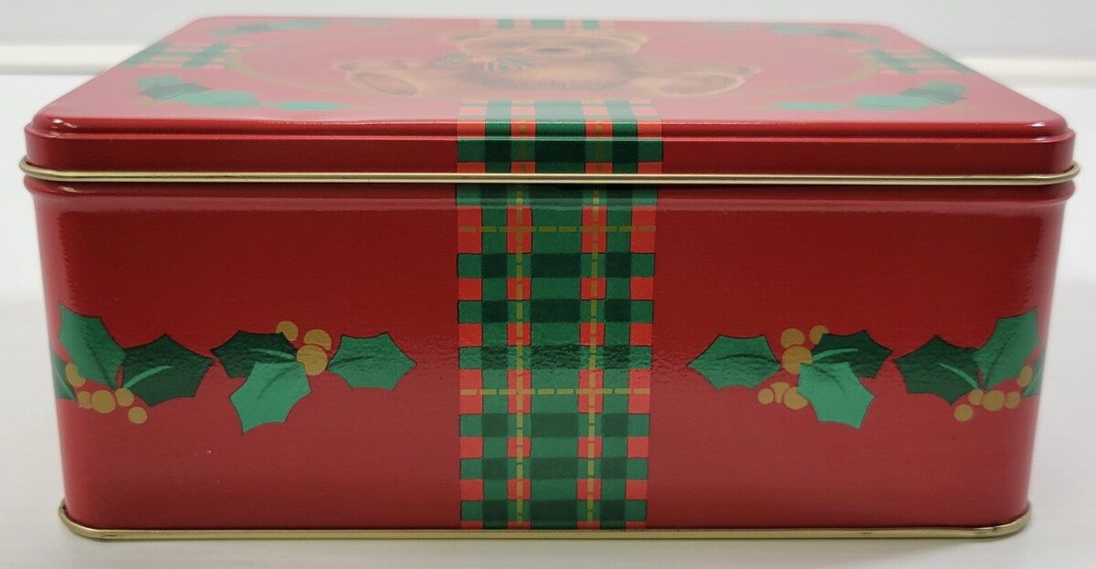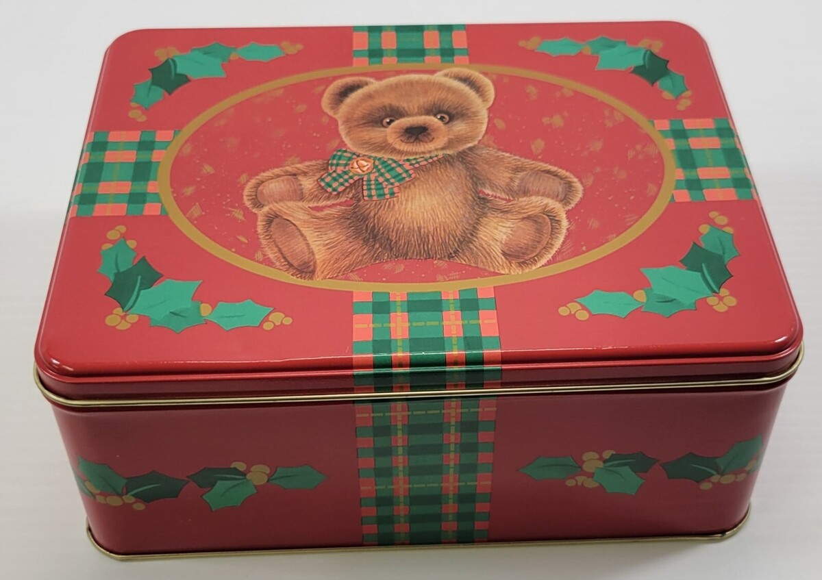 Vintage 1987 Christmas Holiday Teddy Bear Red Hallmark Cards Collectible Tin