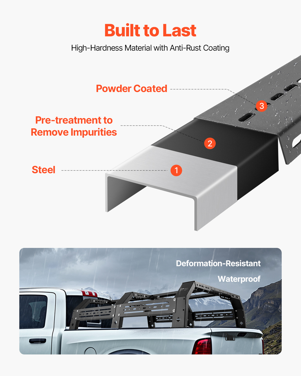 VEVOR Overland Truck Rack 51.2-65.4in Width 900lbs Steel Ranger/Colorado