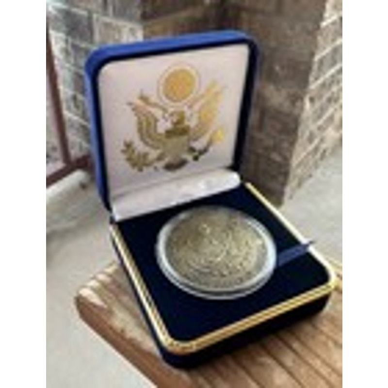 This is a Department of Interior challenge coin. It comes with a blue velvet case for protection and display. Perfect for collectors, civil servants, and anyone who appreciates the important work of the Department of the Interior. This coin is a tangible piece of American heritage. Don't miss out on this opportunity to add a unique piece to your collection!