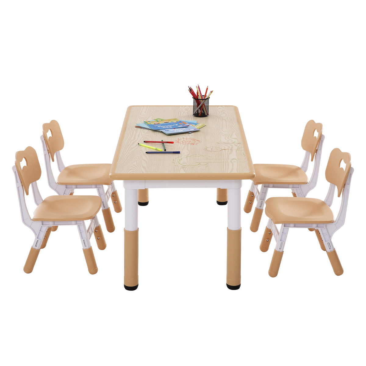 VEVOR Kids Table and 4 Chairs Set, Height Adjustable Toddler Table and Chair Set