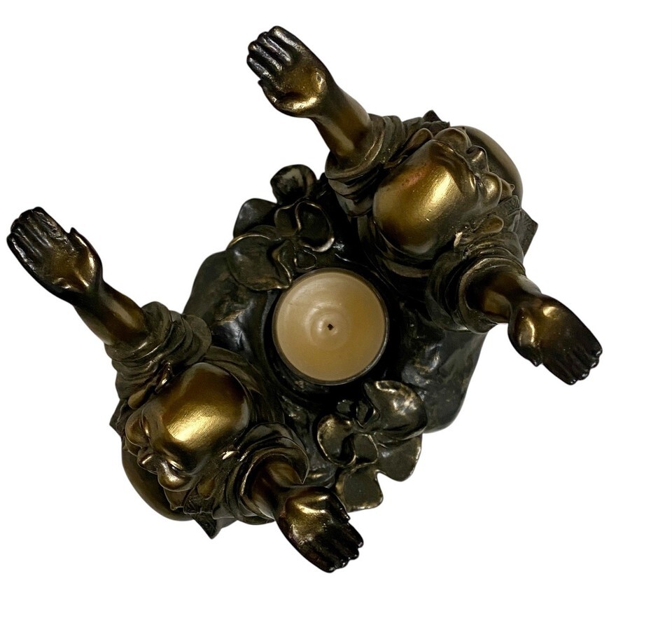 Double Happy Buddah Hands Raised Candle Holder Resin Gold Color