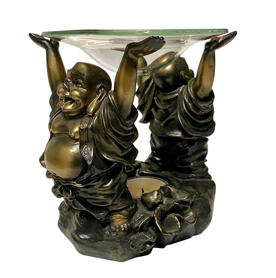 Elevate your space with the serene presence of the Double Happy Buddha Hands Raised Candle Holder. Crafted from high-quality resin and finished in an elegant gold color, this piece brings a touch of tranquility to any room. The intricate design features the iconic Buddha Hands motif, symbolizing good fortune and prosperity.