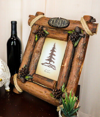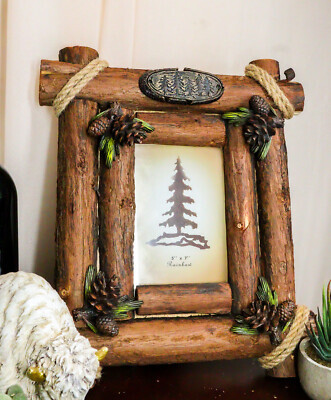 Ebros Rustic Western Autumn Fall Festive Pinecones With Wooden Log Picture Frame 5"X7"