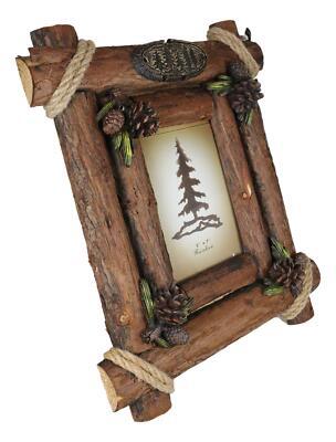 Rustic Western Autumn Fall Festive Pinecones With Wooden Log Picture Frame 5"X7"