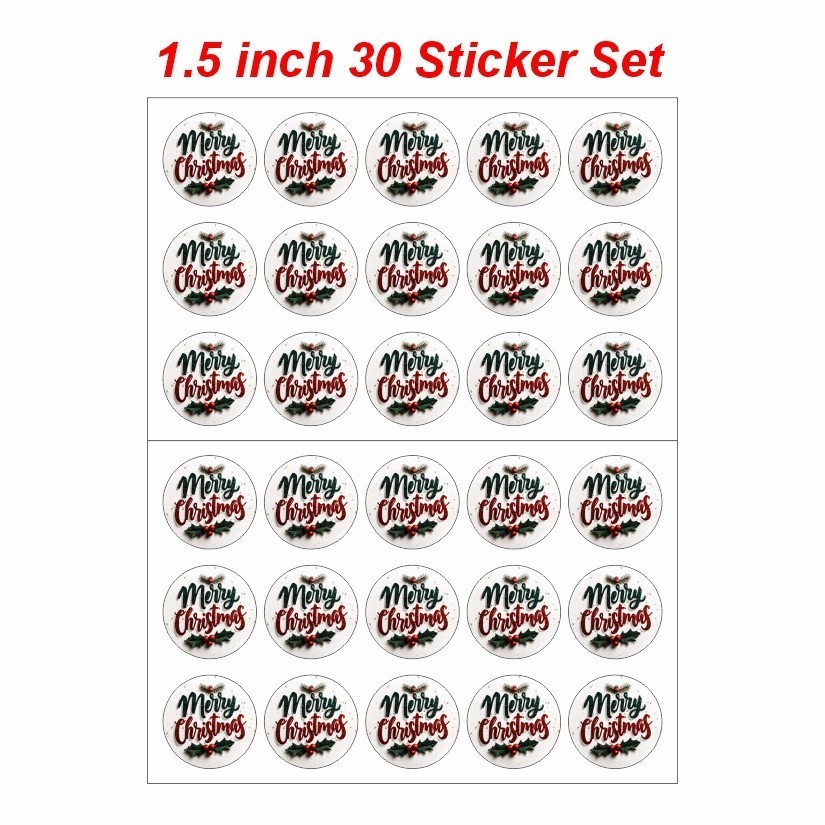 Merry Christmas Round Dot Stickers Set, 1.2" & 1.5"