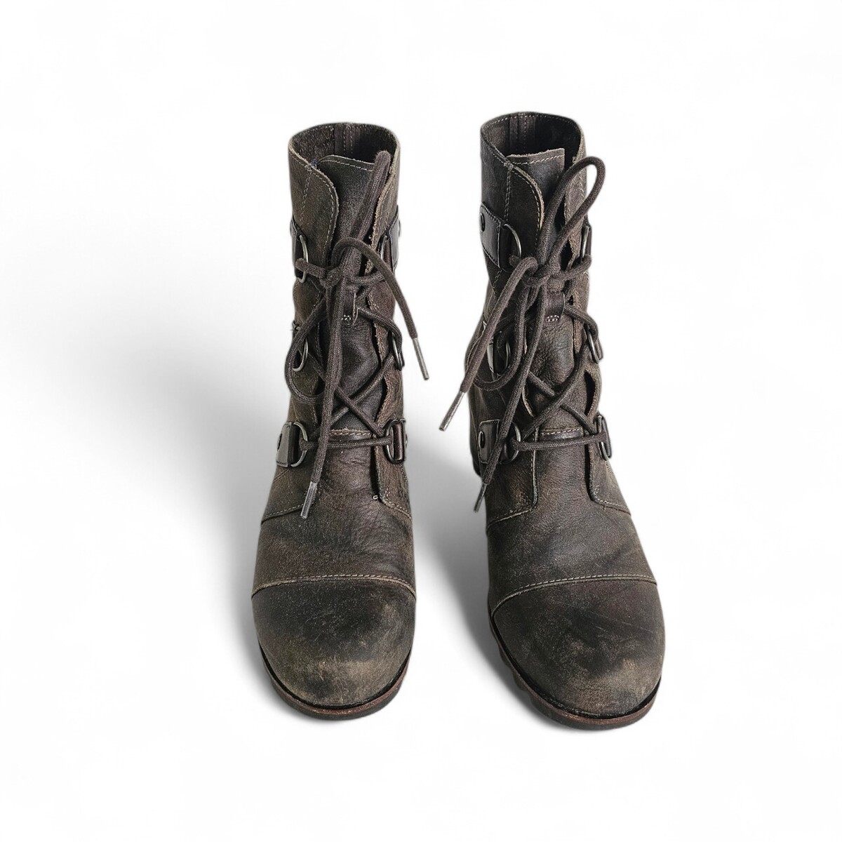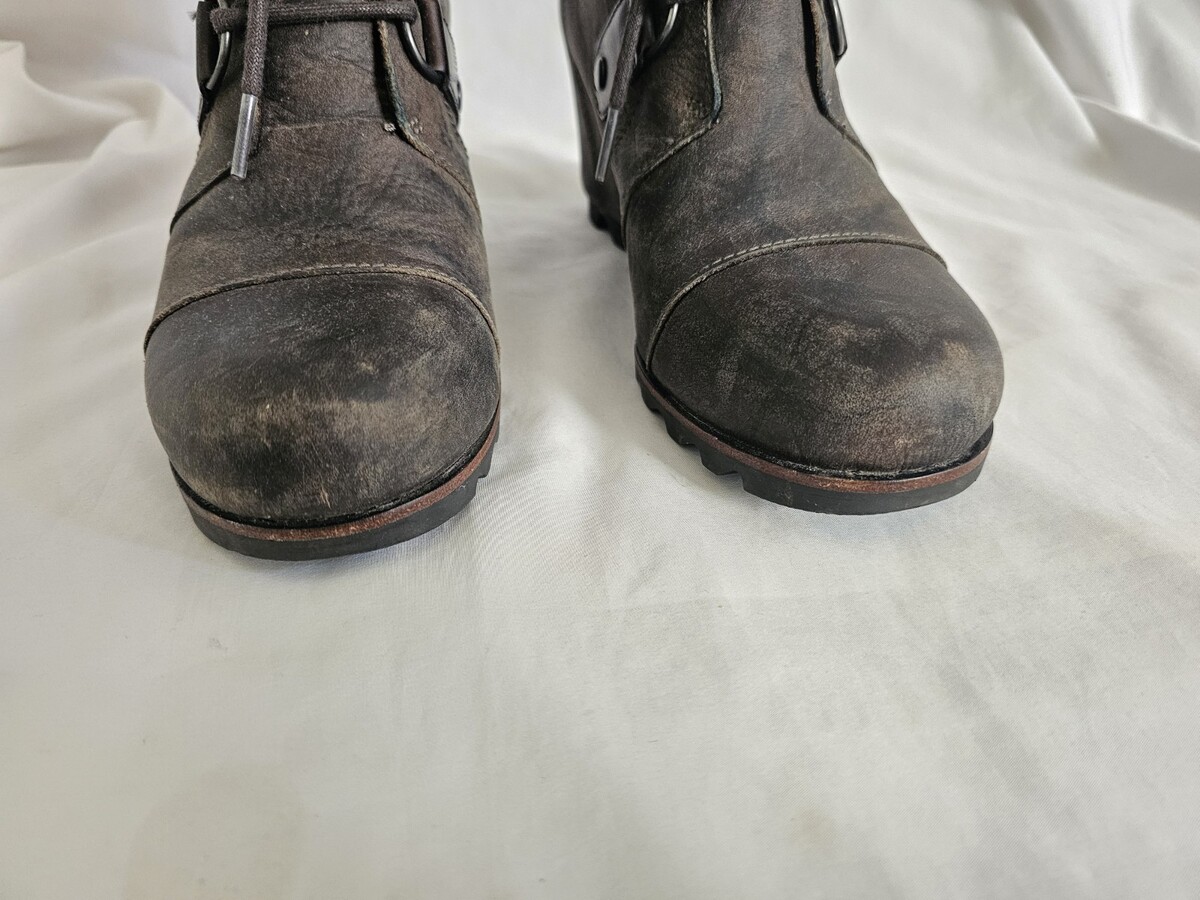 SOREL Joan of Arc Ankle Boots Womens US 9 EU40 Brown Leather Wedge Booties