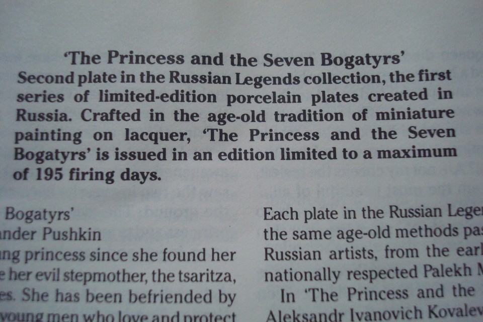 Russian Leyends Collector Plate "The Princess and the 7 Bogatyrs" with certs ^^