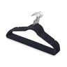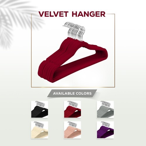 14.5" slimline junior/petite size hangers with notched shoulders for hanging straps. These space saving slim hangers with non-slip velvety finish are sure to protect your delicate petite size garments.Ultra slim space-saving hangers. Polished chrome hook.