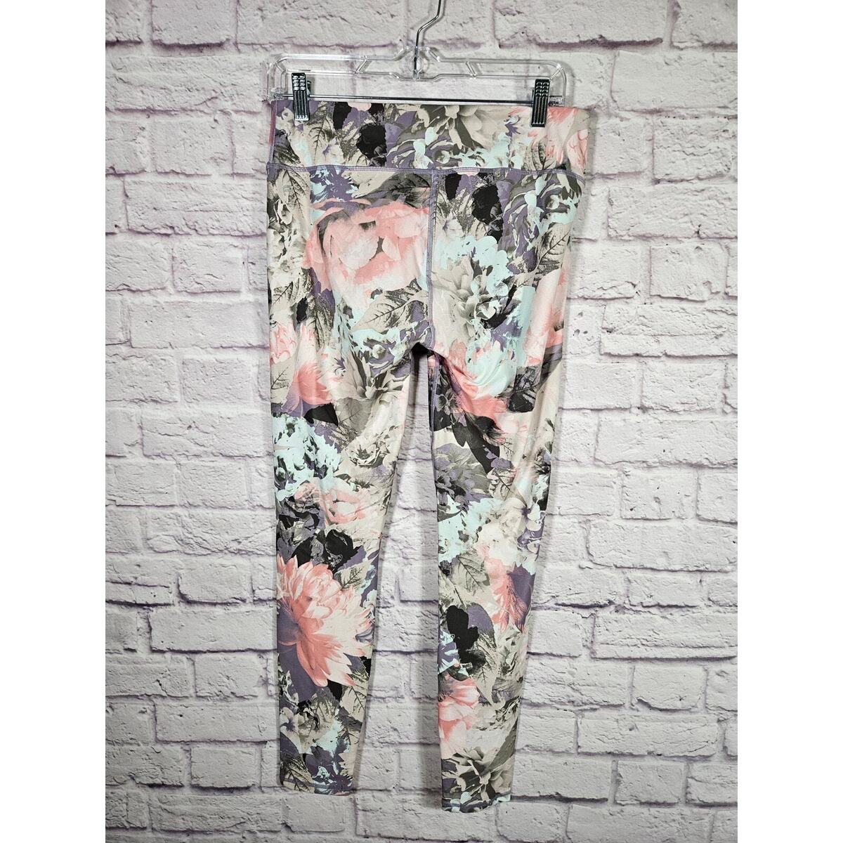 Fabletics Powerlite Floral Leggings Size Medium Pink Purple Green Gray Black
