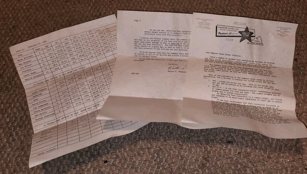 VTG Wampler Foods Turkey Valley Star Packers Letter 1985 Letterhead Hinton Va