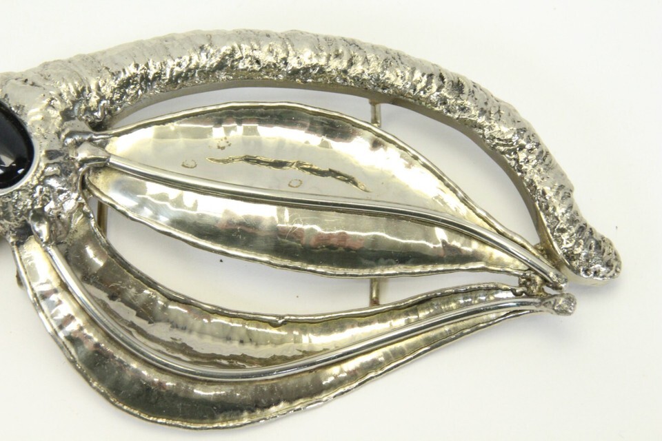 Octopus Belt Buckle Large 6" Long x 3" High Silver Tone Black Onyx Eye Jewelry