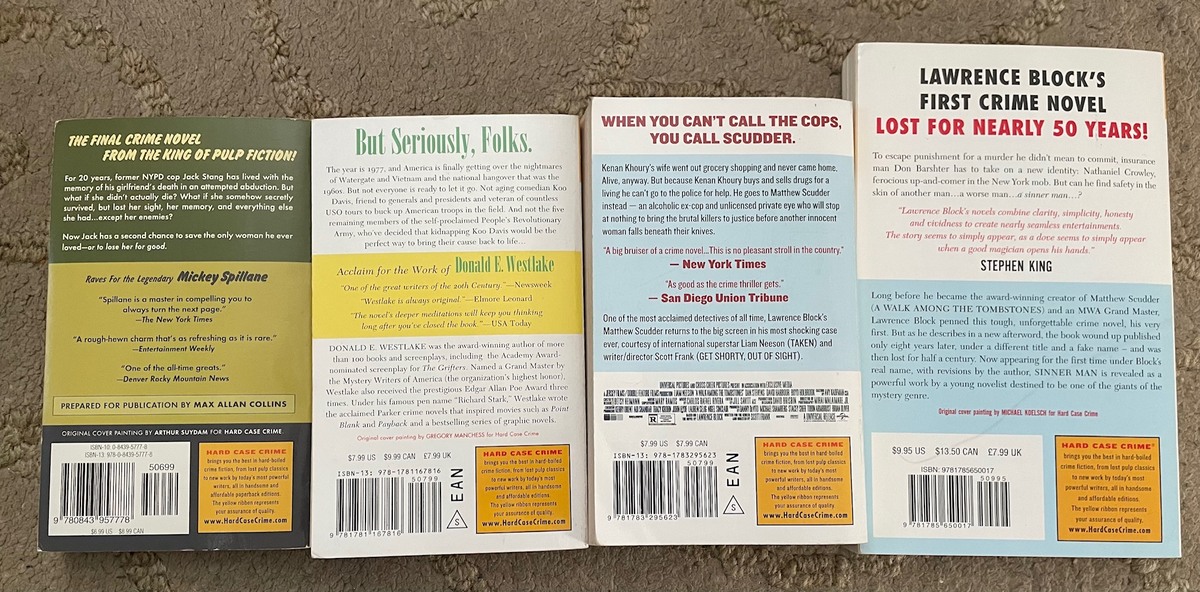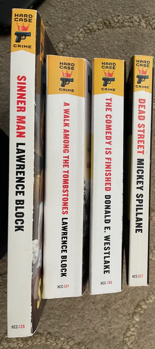 Hard Case Crime 4 paperback book lot: Mickey Spillane, L. Block (2), D. Westlake, reading copies