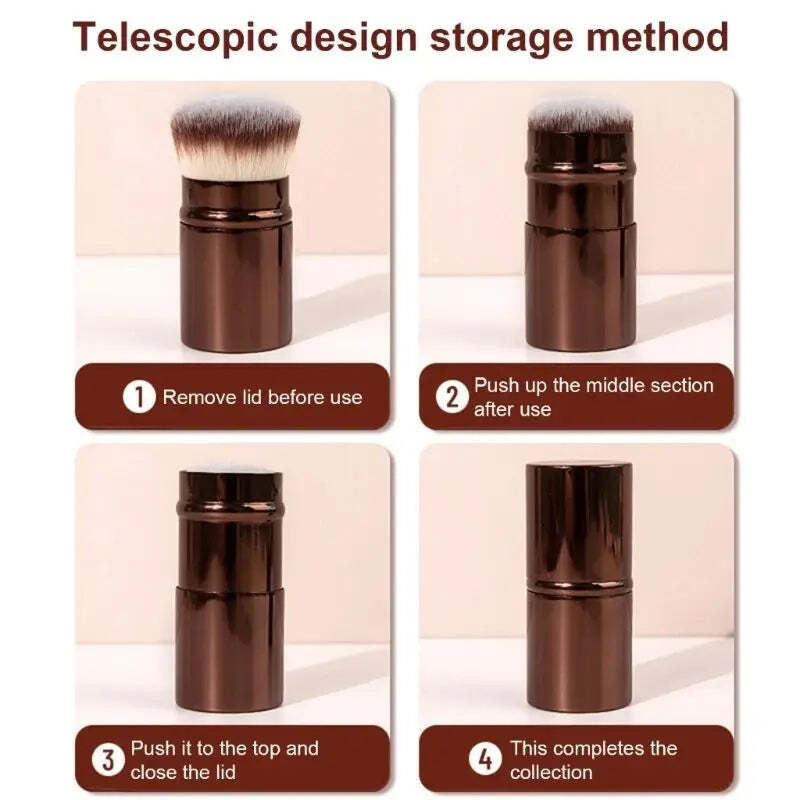 Retractable, dustproof design – The unique telescopic brush head slides neatly into its casing and is protected by a cover, keeping bristles clean in your bag, drawer, or makeup kit.