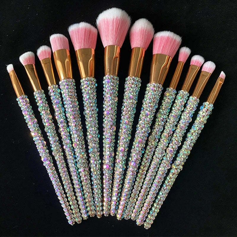 12Pcs Diamond-Studded Makeup Brush Set – Bling Beauty Tools for Flawless Glam