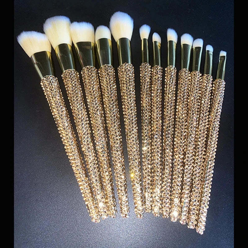 12Pcs/set Diamond-studded Makeup Brushes Gems Makeup Beauty Tools Full Diamond L