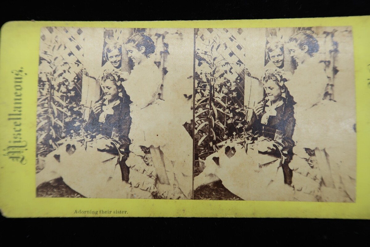 Antique Miscellaneous Life View Stereoview Adorning Their Sister View