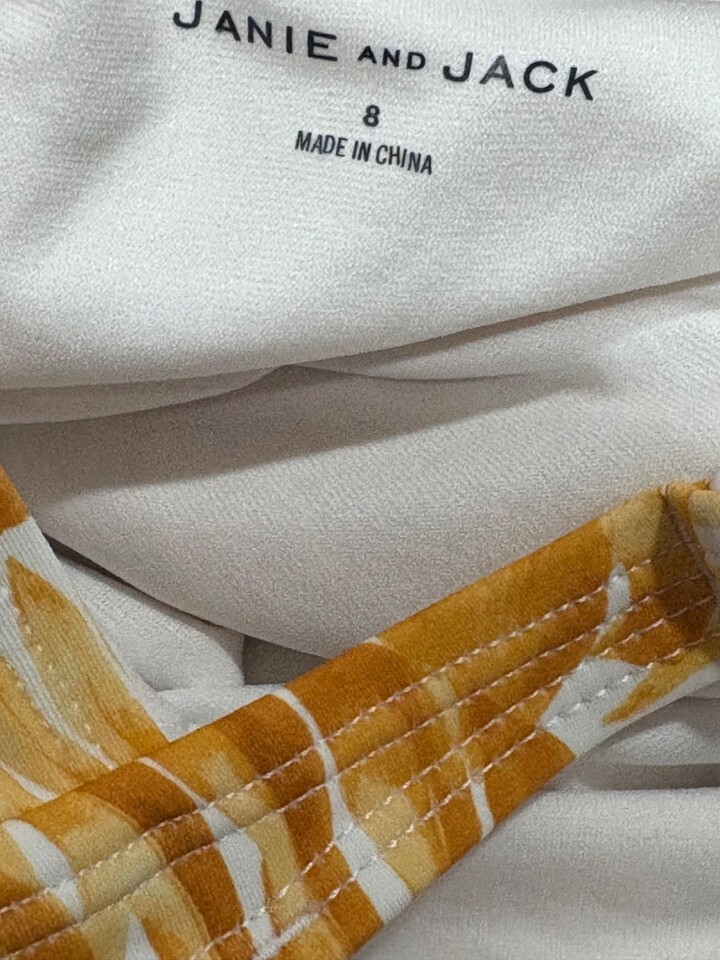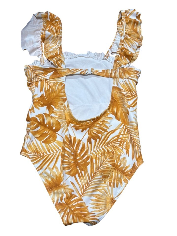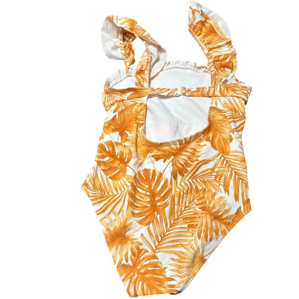 Girls Tropical Leaf Print One-Piece Swimsuit By Janie And Jack Size 8 Orange & W