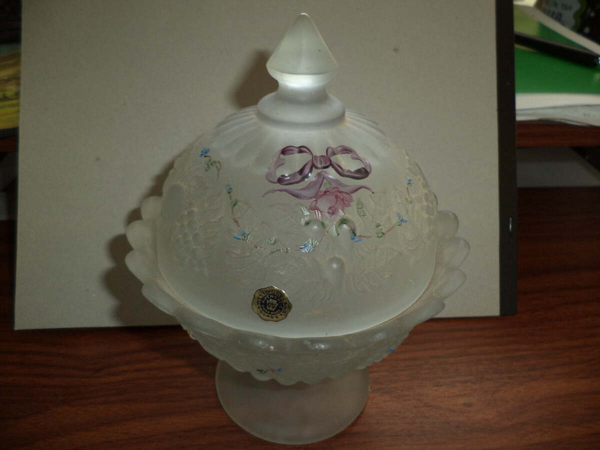 Westmoreland Authentic Handmade Candy Dish, about 8" tall with lid.