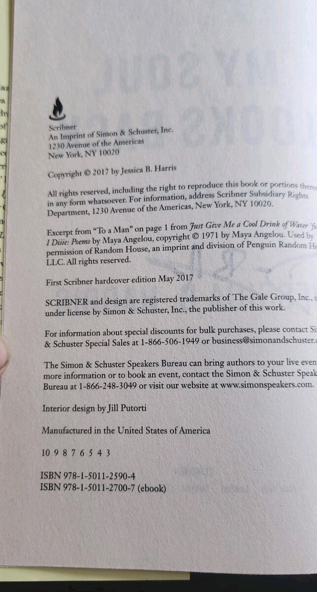 My Soul Looks Back Jessica B Harris Autographed Signed Hardback 1st Edition