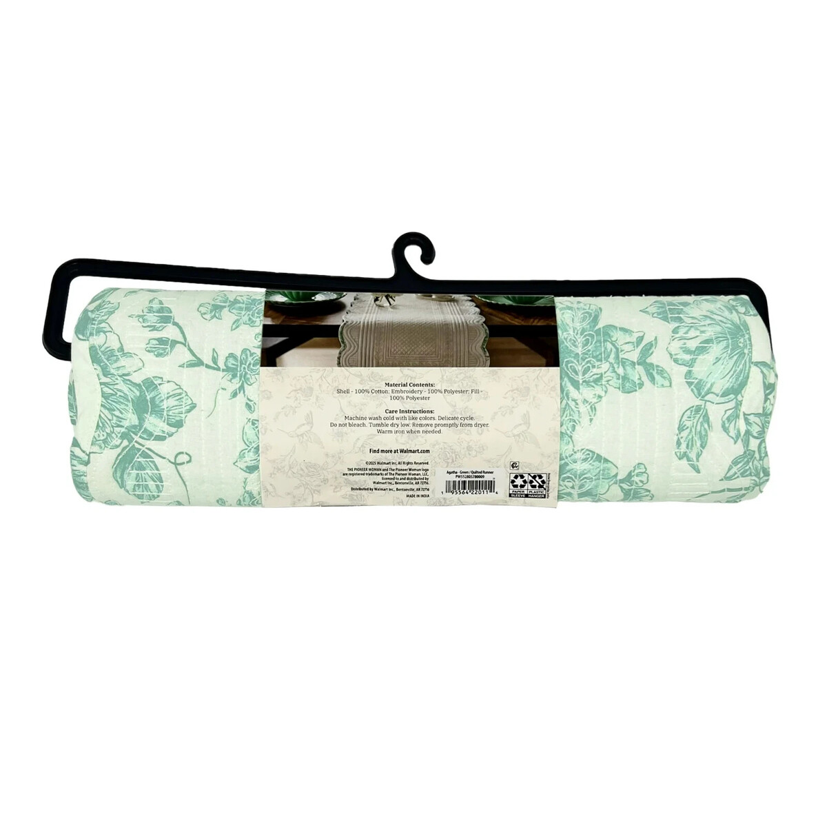 The Pioneer Woman Agatha Quilted Fabric Table Runner, Green White, 14" x 90"