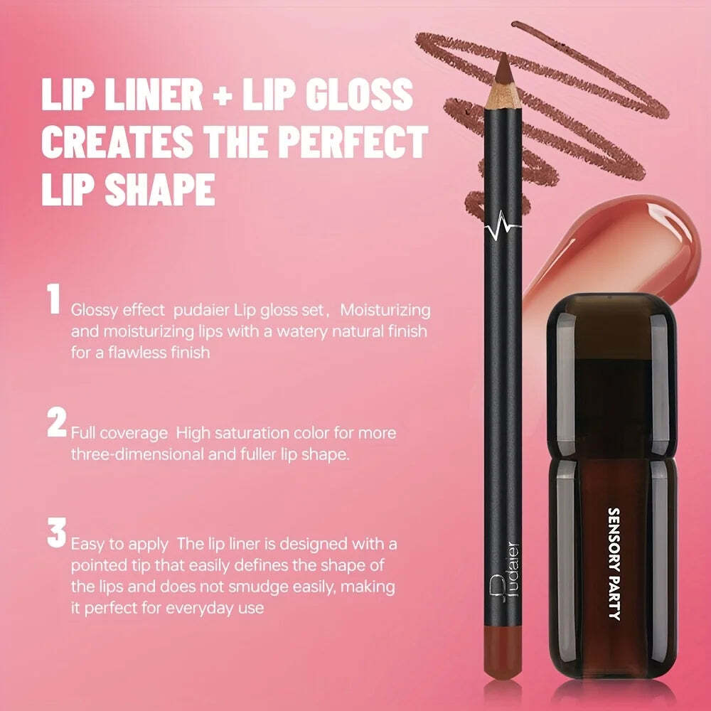 Meet your new go-to lip kit for every look, from everyday nude to full-glam night out. The Pudaier Lip Gloss Lip Liner Set is designed to shape, define, and drench your lips in rich, smooth color that lasts. One swipe of liner, one glide of gloss ? and your lips look fuller, softer, and perfectly polished all day.