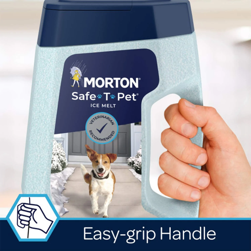 Protect your furry friends this winter with a snow solution for happy paws, the Safe-T-Pet Ice Melt by Morton. Developed with the help of veterinarians, this specially-formulated ice melt is the better choice for your 4-legged friends. Free of both salts and chlorides, this blend is designed to be less irritating to pets? paw pads than rock salt. Stop your whole family from slipping and falling this season, and let your dog happily frolic in your winter wonderland. De-ice your home and quickly melt snow in freezing temperatures as low as 10 degrees Fahrenheit, so you can trust every step your family takes. Effectively clear your steps, sidewalks, and driveways with this convenient 8-pound container. Use the easy-grip handle to open, shake, and evenly spread these pellets onto slippery surfaces. This jug will cover about 340 square feet, great for up to 2 applications on a single-car driveway. For homes with pets, be smarter than snow and stay winter-ready at home with the Morton Safe-T-Pet Snow and Ice Melt.