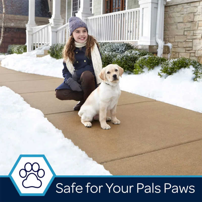 Specially-formulated snow and ice melt keeps your family and 4-legged friends protected this winter Salt and chloride-free formula developed with veterinarians to be less irritating to your pets' paws Apply before and after snowfall to stop your loved ones from slipping; melts down to 10 degrees Fahrenheit Use for deicing sidewalks, driveways, and well-traveled areas for a faster way to clear your path 8-pound jug covers approximately 340 square feet, great for 2 applications on a single-car driveway Easy-grip handle and shaker packaging allows for convenient carrying, storage, and application on slippery surfaces Size: 8-pound jug Application: Deicing Coverage: 340 square feet Color: Blue Dimensions (L x W x H): 7.8 x 5.7 x 11.4 inches Weight: 8.49 pounds