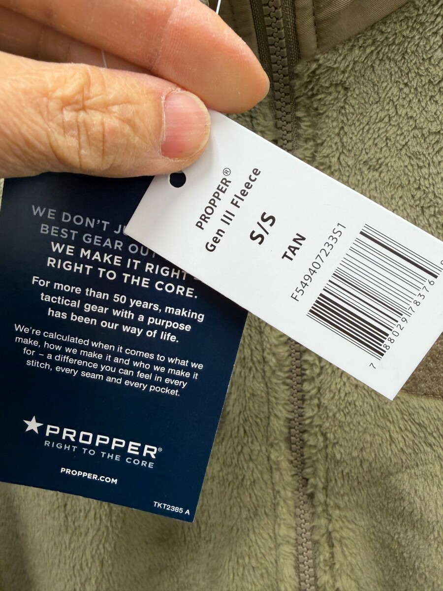 NEW Propper F54880E368M3 Gen III Fleece Jacket Tan - Size Small Short.