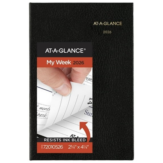 AT-A-GLANCE Fine Diary 2026, Weekly Monthly, Pocket Size, Black (72-01-05)
