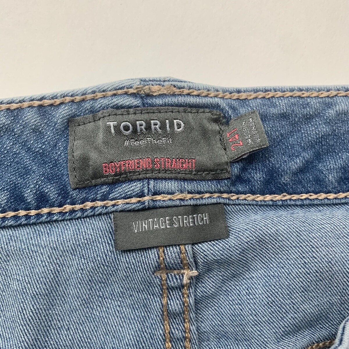 Torrid Womens Jeans Size 24 Tall Blue Boyfriend Straight Vintage Stretch Distressed