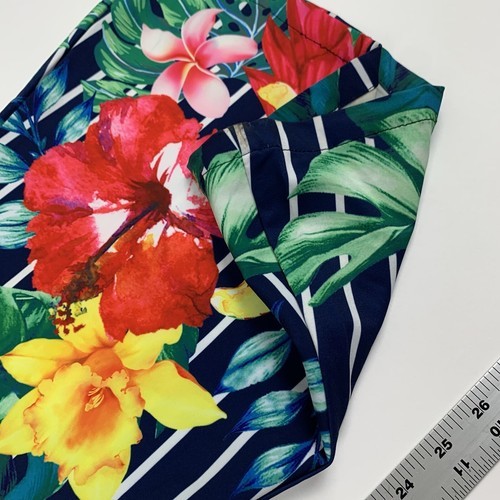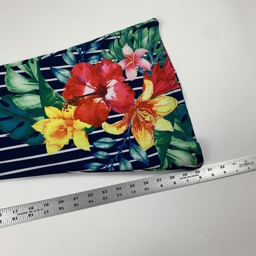 Chicways Floral and Striped Jumpsuit Size Large Hibiscus Flower Vneck blue.