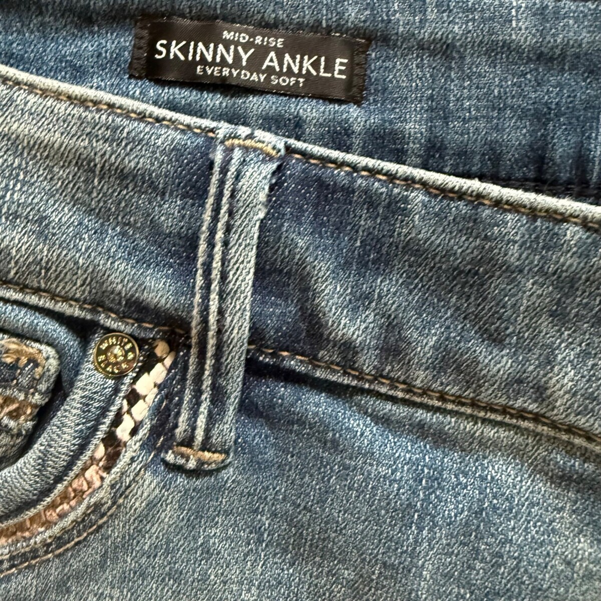 White House Black Market Skinny Ankle Jeans Mid-Rise Everyday Soft Denim With Snakeskin Accents Size 6