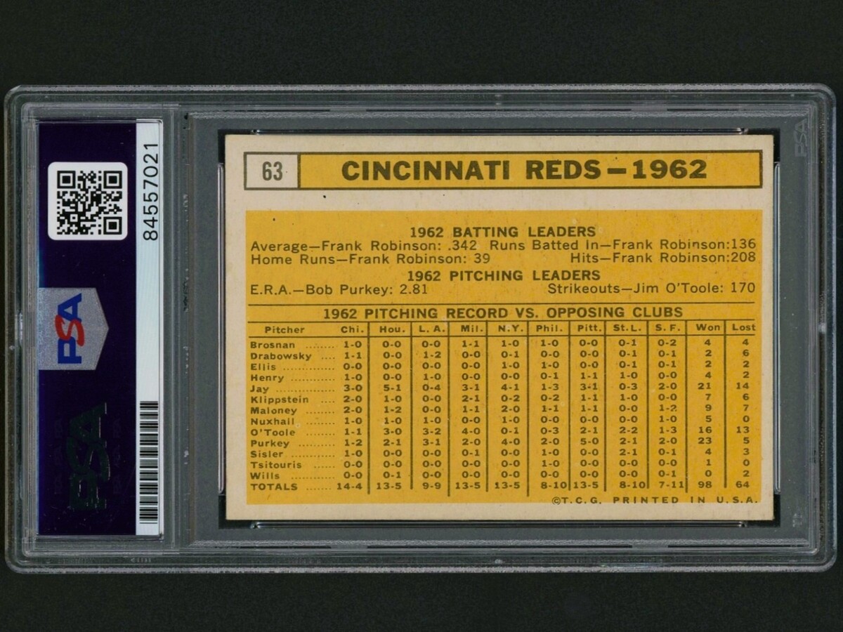 1963 Topps Pete Rose RC Autograph Card #63 Team "1st Game" PSA Gem Mt 10 Reds