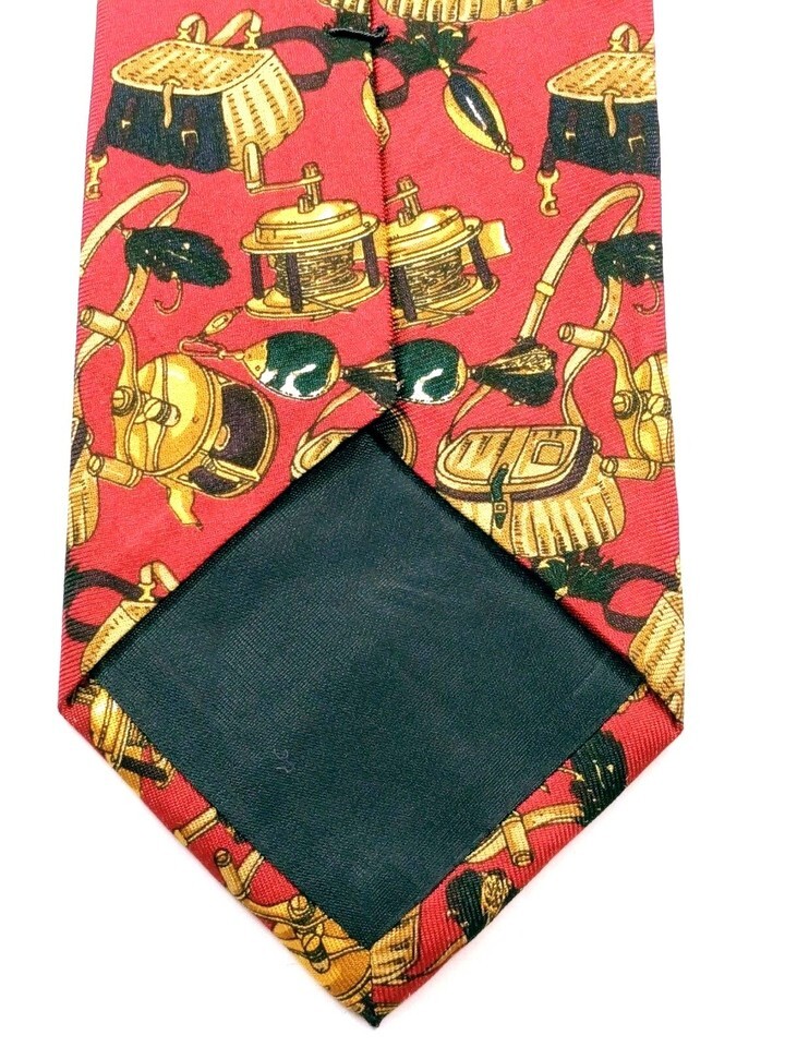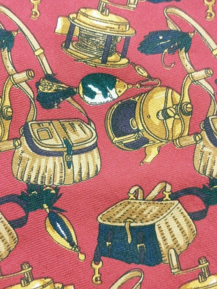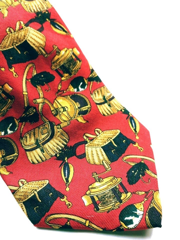 Lands' End Men's Fishing Rod Reel Tackle Box Lures Jigs Necktie Novelty Silk