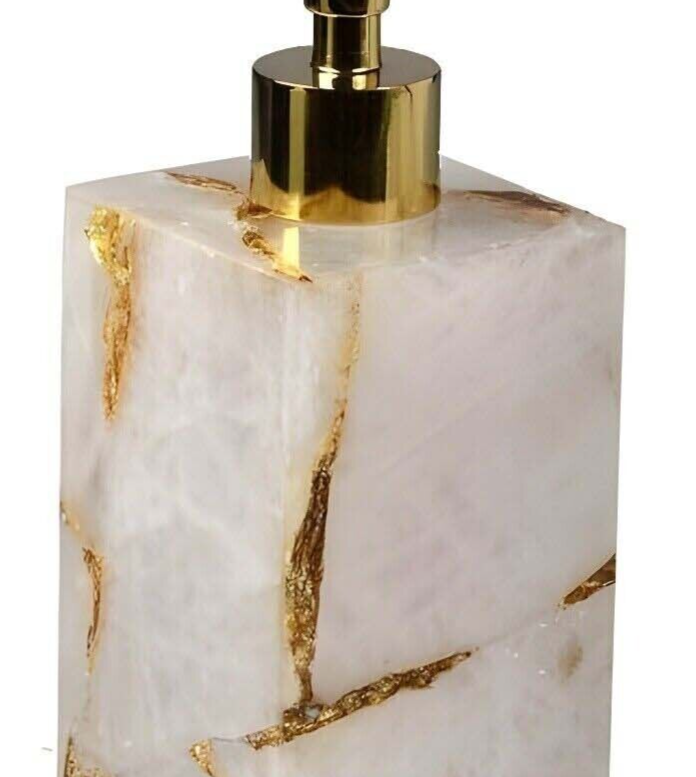 White Agate Soap Dispenser Top Bathroom Refill Shampoo Golden Pump Vanity Deccor
