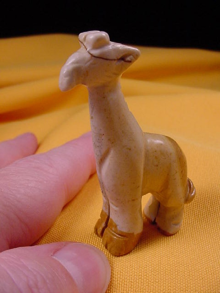 (internal #Y-GIR-ST-551) Great carving of a STANDING GIRAFFE, carving is 1-3/4" tall. Excellent quality of PICTURE JASPER from UTAH, this gem has been hand-carved in China.