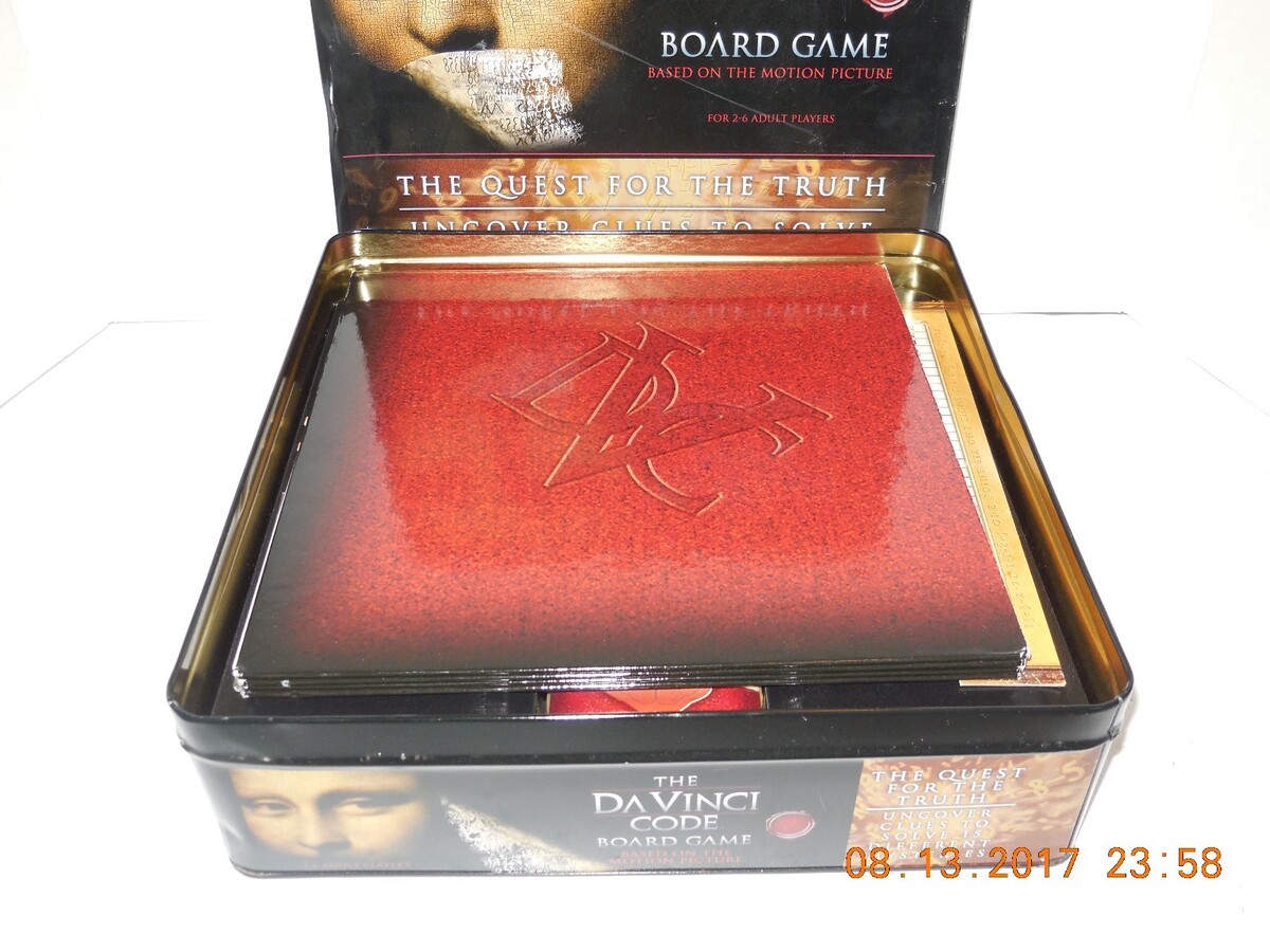 For Sale is a 2006 Roseart The Da Vinci Code DVD Board Game in Collectible Tin 100% COMPLETE. it in good Used condition. comes with the Pieces as seen in the pictures provided what you see is what you will receive. Please ask Any and All Questions prior to purchasing. Fast Same or Next day shipping with Free Delivery Confirmation within the U.S. Payment Due within 7 days of purchase (if you need more time please let us know In advance) we love to combine shipping is always a Yes and Most of the time Additional Items Ship for free.