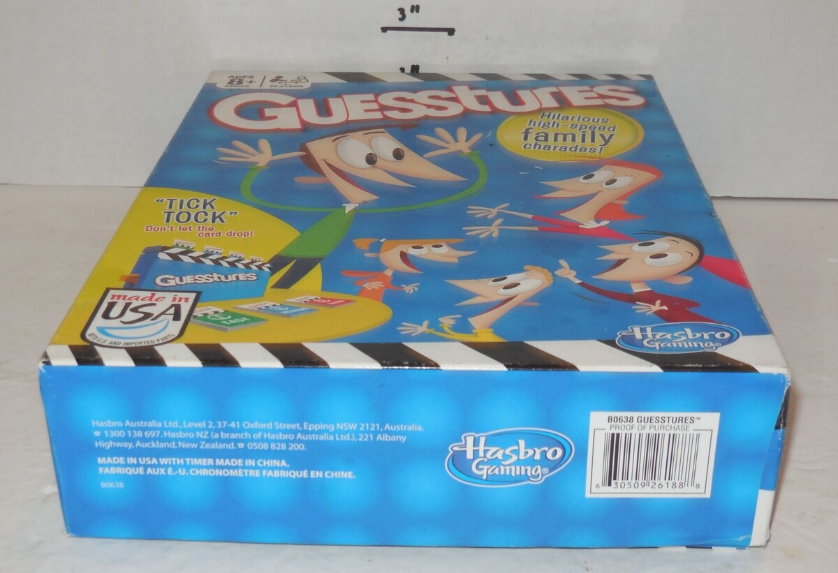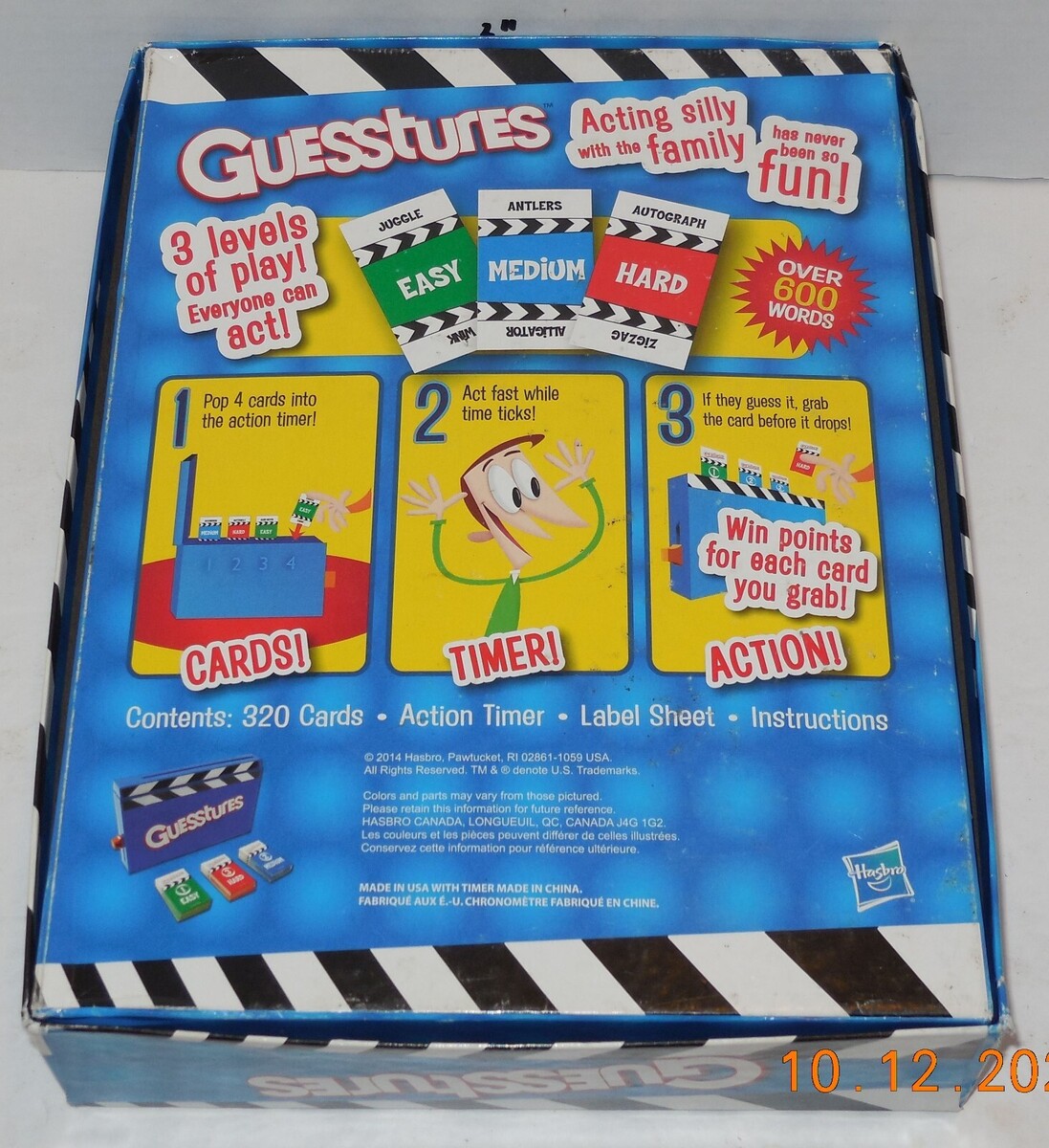 For Sale is a 2014 Hasbro Guesstures 100% Complete. it in good Used condition box has seen better days. comes with the Pieces as seen in the pictures provided what you see is what you will receive. Please ask Any and All Questions prior to purchasing. Fast Same or Next day shipping with Free Delivery Confirmation within the U.S. Payment Due within 7 days of purchase (if you need more time please let us know In advance) we love to combine shipping is always a Yes and Most of the time Additional Items Ship for free.