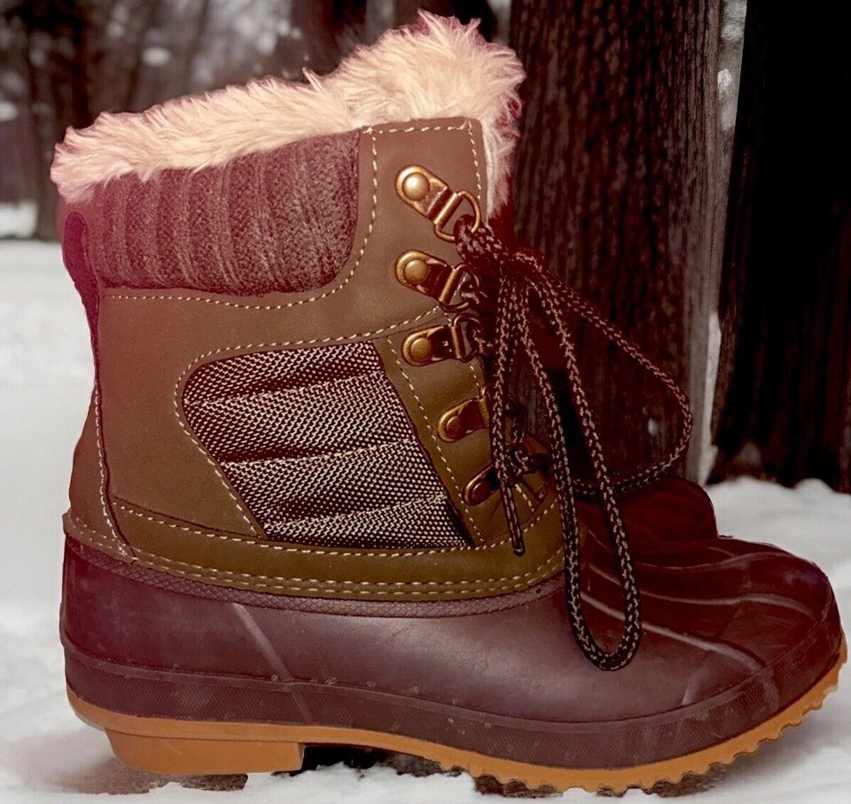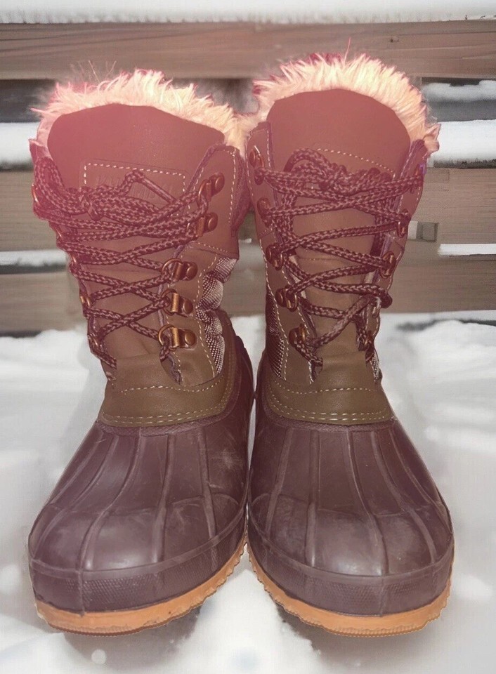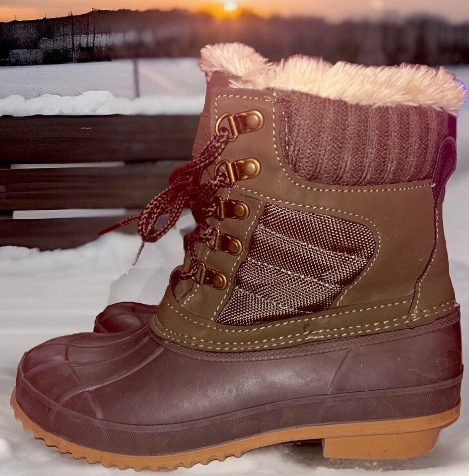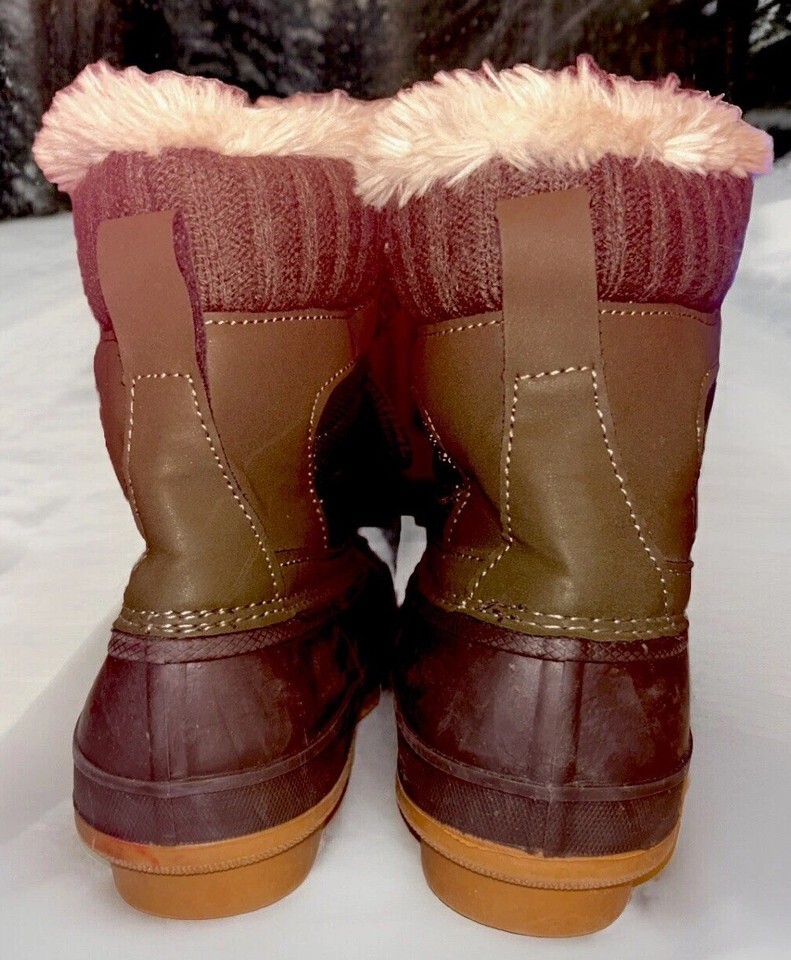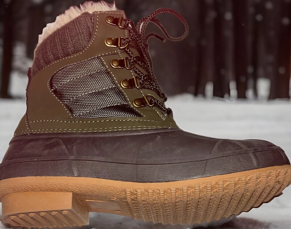 Khombu Kathleen Boots Faux Fur Duck Booties Waterproof Olive Green Size 6M