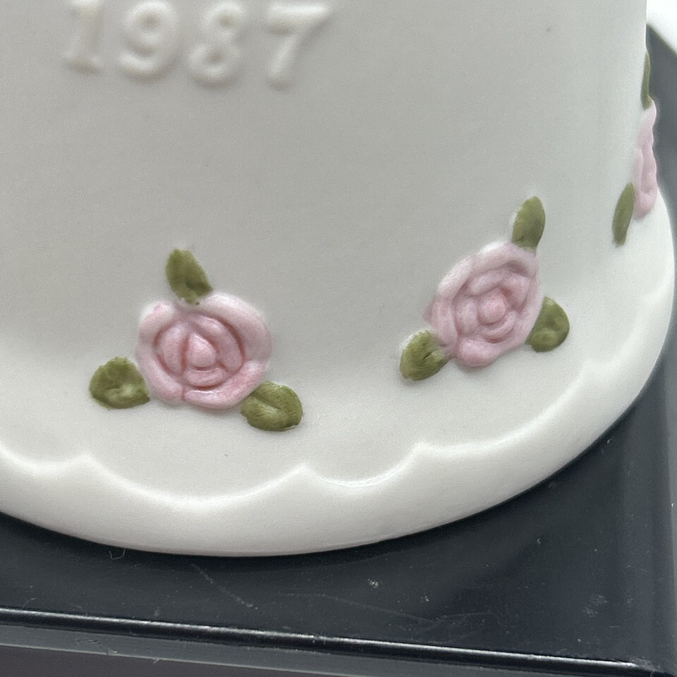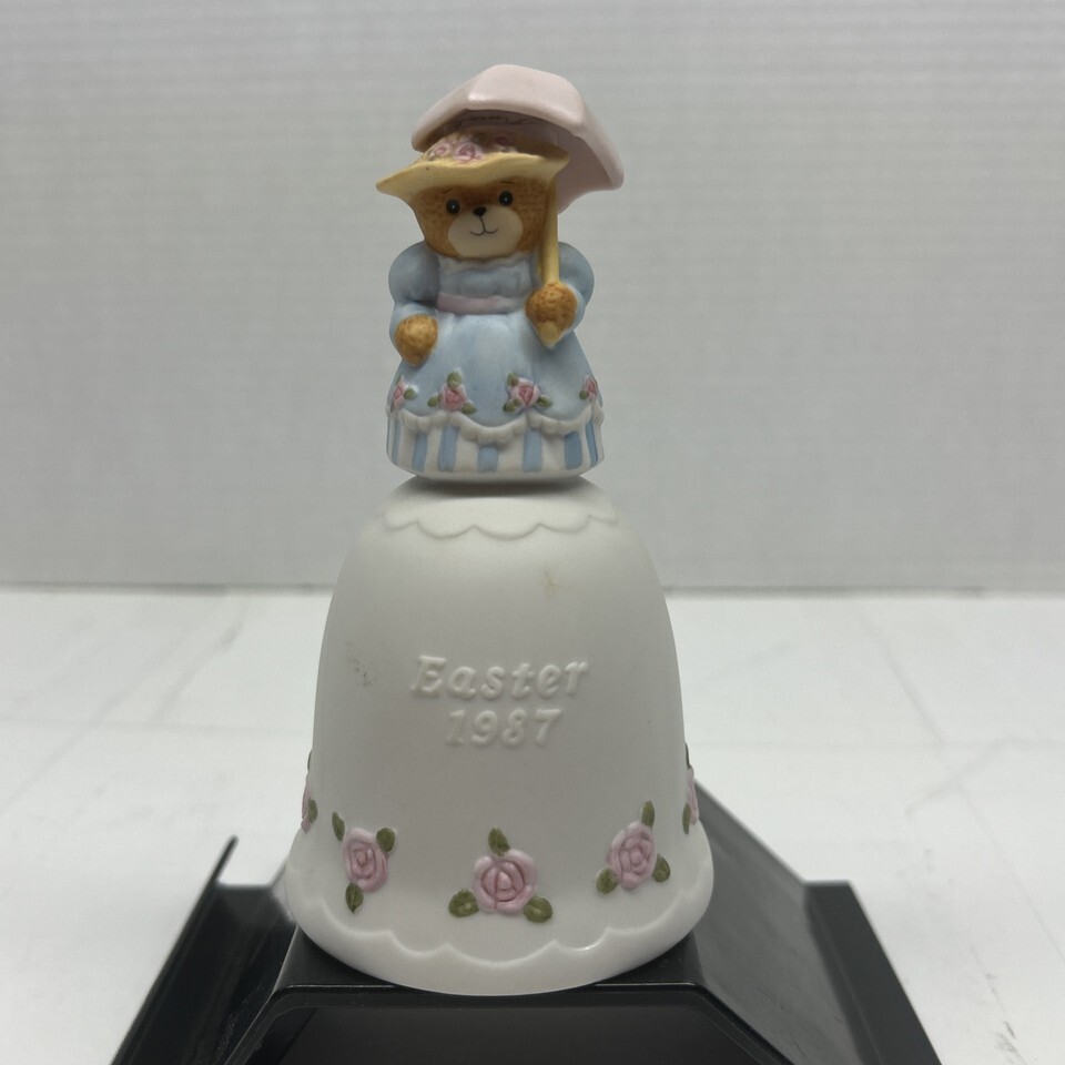 VTG Retired Enesco Lucy and Me Lucy Rigg 1987 Easter girl bear with parasol Bell