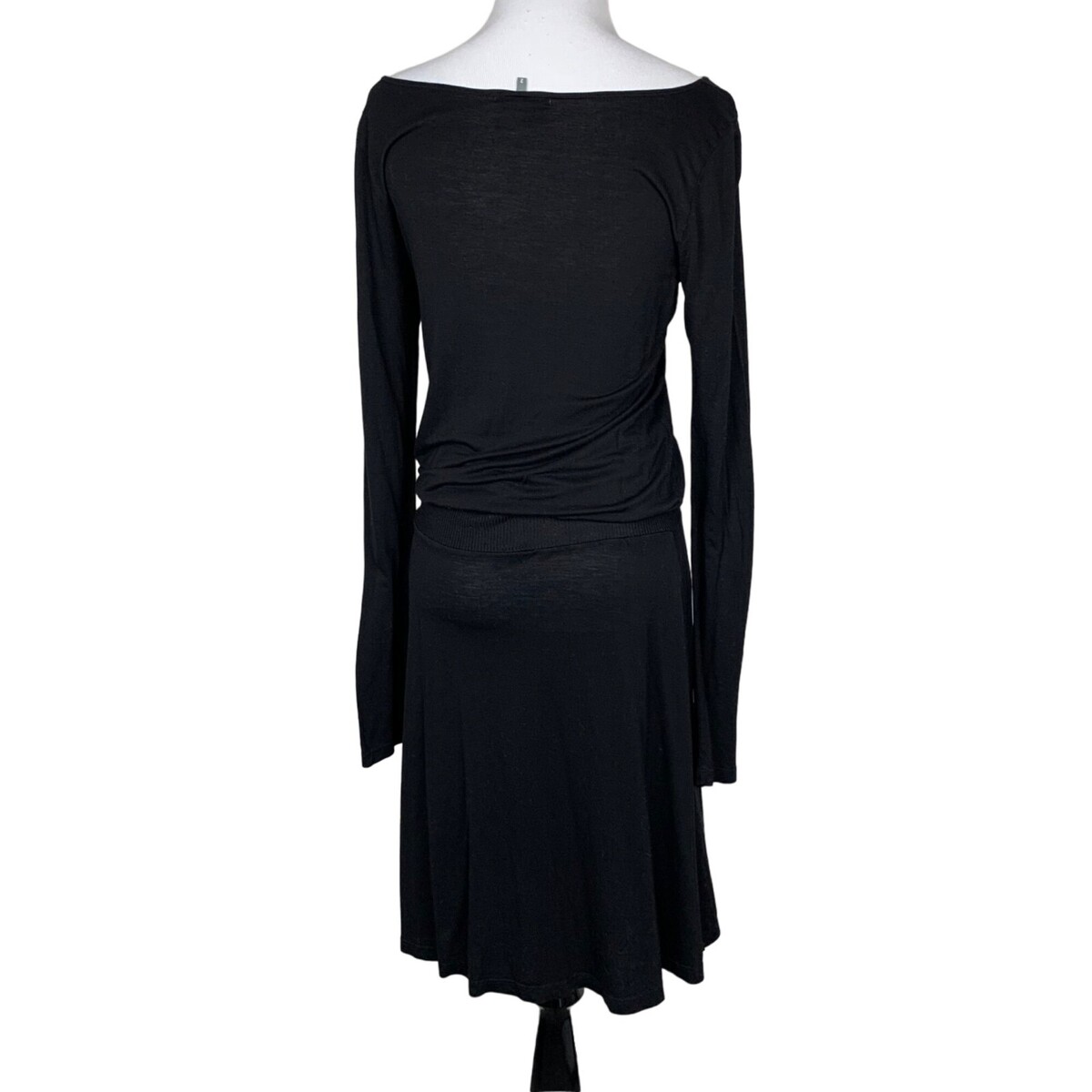James Perse Black Long Sleeve Tencel Dress Size 2 Made In USA Drop Waist